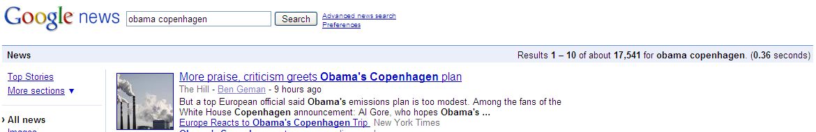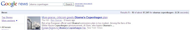 Grabbed at the same date and time. Wow! This is the most significant story about global warming of the last decade or more, and it warrants a whole 497 feeds. Searching on Google News for "climategate" yields 443 hits: